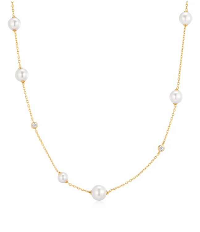 14k Gold Plated Sterling Silver Asymmetrical Shell Pearl Station Necklace