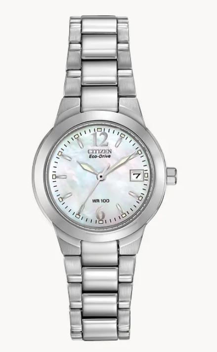 At Pughs Diamond Jewelers, we proudly offer this Citizen ladies watch with the surprise of a mother-of-pearl dial that lends this ladies’ sport watch a extra feminine touch. Ever practical, this stainless steel 3-hand model with 26mm case also features luminous hour and minute hands, a date indicator, foldover clasp with push-button, and 100 meter water resistance. Featuring our Eco-Drive technology powered by light, any light. Never needs a battery. You can trust in both the quality and style it brings. We have the perfect option for you, a loved one, or a best friend. Our expert sales team is committed to providing exceptional service and attention to every detail. Visit us today and experience the Pughs Diamond Jewelers difference!
