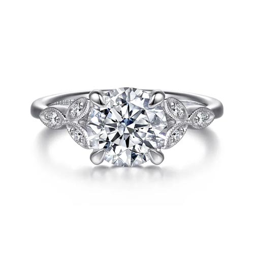 Gabriel & Co. Brigida – Vintage Inspired 14K White Gold Round Diamond Engagement Ring
