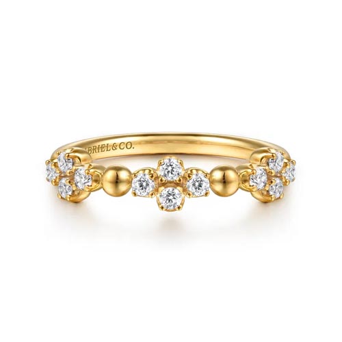 Gabriel & Co. Bujukan Clover – 14K Yellow Gold Bujukan and Diamond Clover Stackable Ring