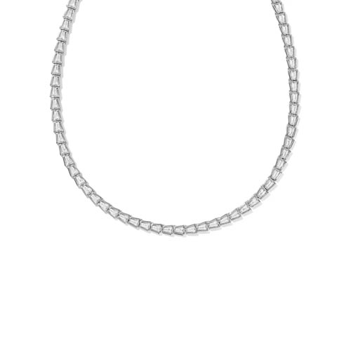 A jewelry classic, now with even more shine. Meet the Bella Sterling Silver Tennis Necklace, a stunning strand designed with cubic zirconia stones in a tapered baguette shape for dimensional sparkle. Wear this necklace solo for a chic and minimal look, or try layering it with your other favorite necklaces for a maximalist moment.