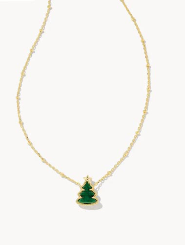 Kendra Scott-Holiday Tree Gold Short Pendant Necklace in Green Quartzite
