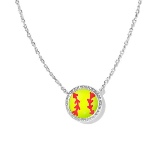 Kendra Scott Rhodium Plated Sterling Silver Chartruese Softball 19″ Short Pendant Necklace