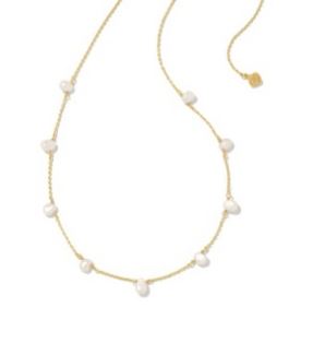 Kendra Scott Sterling Silver Gold Plated Leighton White Pearl Strand Necklace