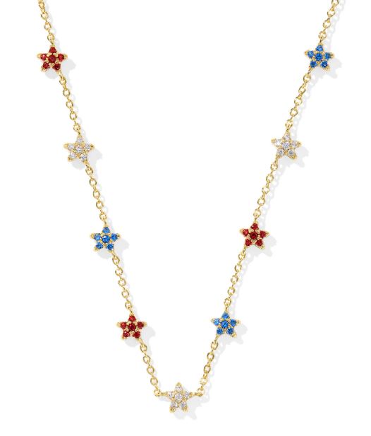 Kendra Scott Sterling Silver Gold Plated Sierra Red White & Blue Star Crystal Necklace