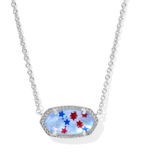Kendra Scott Sterling Silver Rhodium Plated Elisa Red White & Blue Pendant Necklace