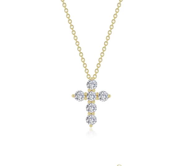 Lafonn Gold Plated Sterling Silver 1.02 cttw Simulated Diamond Cross Pendant with 20″ Chain