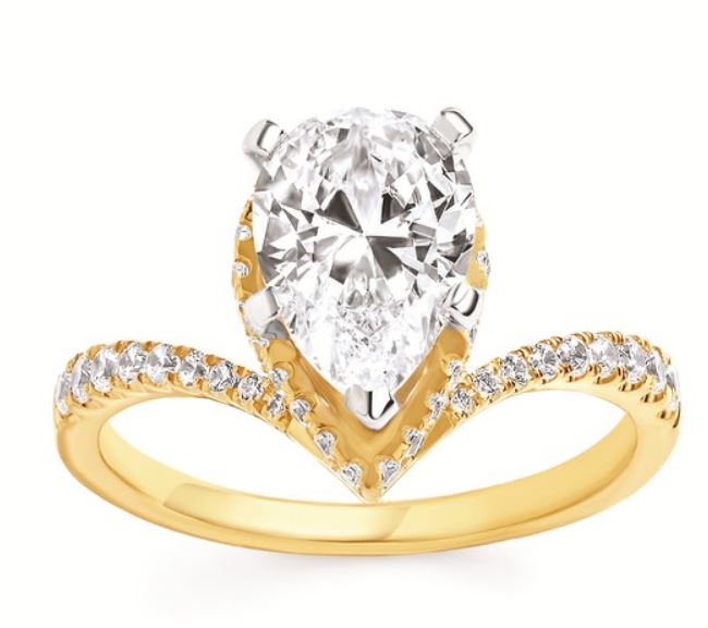 Ostbye Bridal 14k Yellow Gold Ladies .44 ctw Diamond and 1.5 carat CZ Pear Hidden Swirl Halo Semi-Mount Engagement Ring