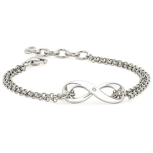 Ostbye Diva Diamonds Infinity Bracelet In Sterling Silver With .01 Ct. Diamond With Rollo Chain Adjustable Between 7.5″ & 6.5″ And Lobster Claw Clasp