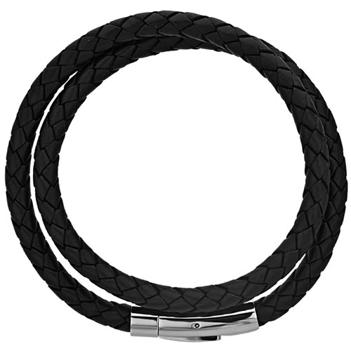 Stainless Steel Black Leather 8″ Double Wrap Bracelet