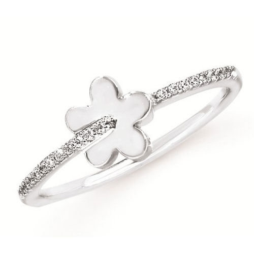 Sterling Silver .08 cttw Diamond and Flower Ring