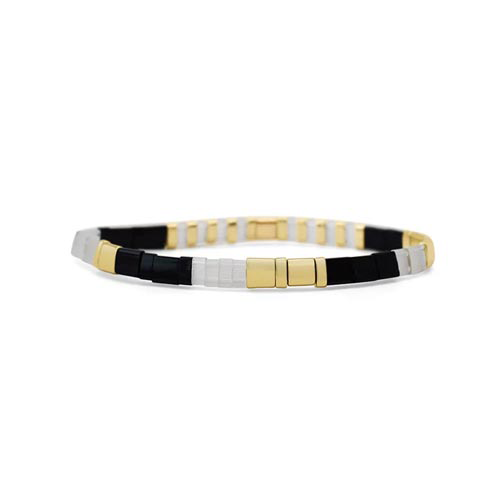 Stretch bracelets in the “Note to Self” collection are made from premium quality, Japanese glass Miyuki Tila beads. The bracelets are meticulously assembled with a morse code pattern, inspirational messaging and stylish packaging.